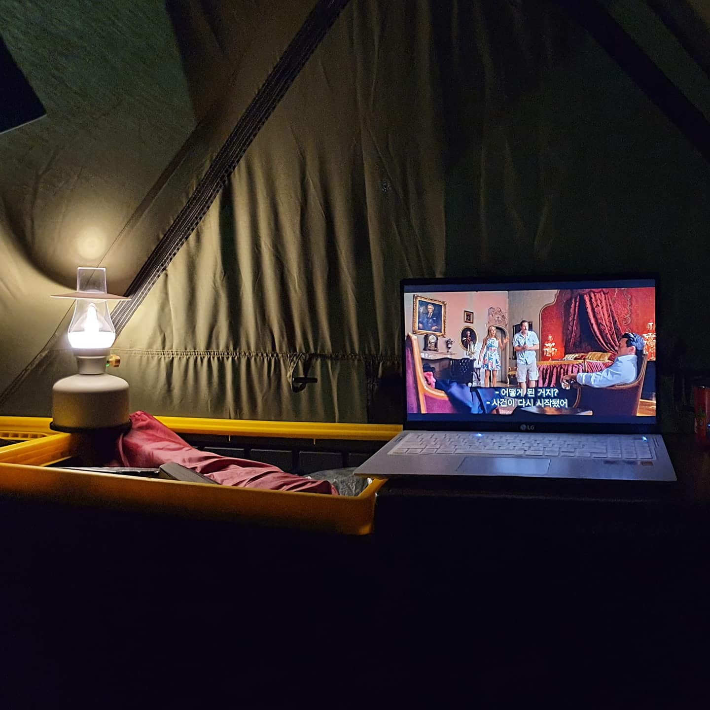 그리고 밤에는 텐트 안에 들어와서 노트북으로 넷플릭스 영화 보고,